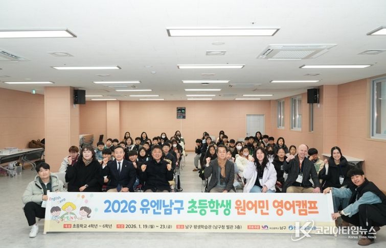 코리아타임뉴스 부산취재본부 | 부산 남구는 지난 1월 19일부터 23일까지 5일간 남구청 별관 평생학습관에서 '2026년 유엔남구 초등학생 원어민 영어캠프'를 운영한다고 밝혔다.