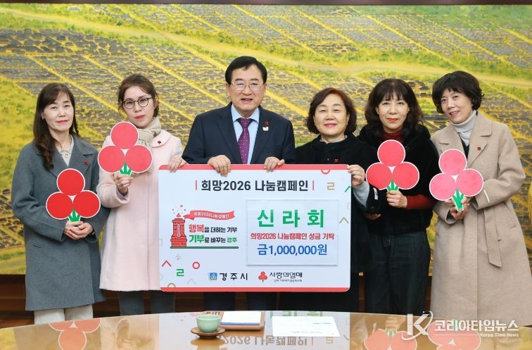코리아타임뉴스 노승선 기자 | 신라회는 1월 16일, 경주시청을 방문하여 ‘희망2026 나눔 캠페인 성금 1백만원을 기탁했다.