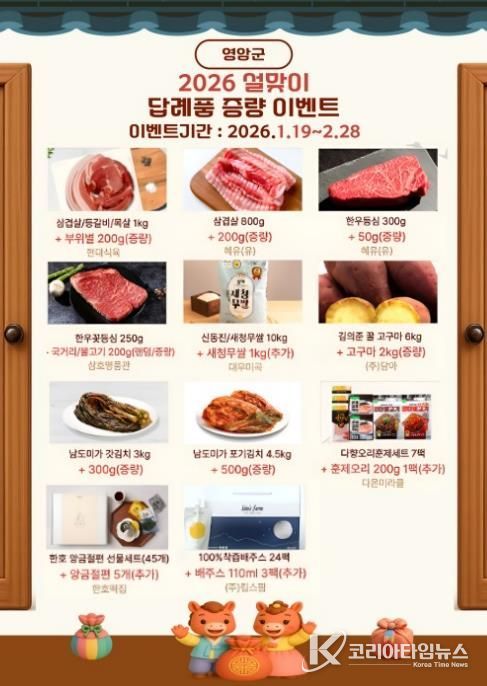 코리아타임뉴스 노승선 기자 | 영암군이 2/18일까지 고향사랑기부 답례품 증량 이벤트 ‘설엔 고향사랑, 영암은 덤으로’를 시행한다.