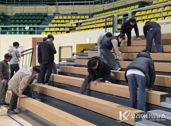 - 1부 시설 점검: 마루바닥의 평탄성 및 가변석 구동계 유격·고정 상태 정밀 확인