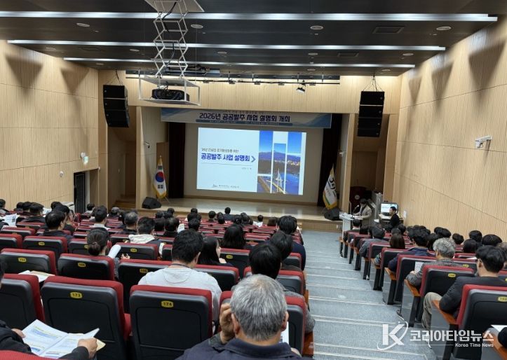 코리아타임뉴스 박찬식 기자 | 서귀포시에서는 침체된 건설경기 활성화의 발판을 마련하고자 대한건설협회(전문포함) 회원 및 건설업 면허 등록업체 종사자 등 100여 명이 참석한 가운데 ‘'26년도 공공발주 사업 설명회’를 1월 16일 14시에 서귀포시청 별관 2층 문화강좌실에서 개최했다.