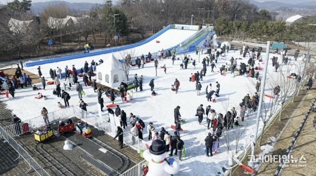 코리아타임뉴스 윤광희 기자 | 의왕시 대표 관광 명소인 왕송호수공원(왕송못동로 307)을 배경으로 펼쳐지는 겨울 축제 ‘겨울아 놀자’에서 방학을 맞은 아이들이 눈썰매를 타며 즐거운 시간을 보내고 있다.