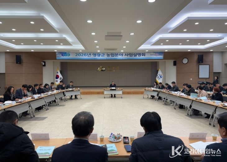 코리아타임뉴스 노승선 기자 | 영광군은 지난 19일 농업현장에서 농업인들과 직접 소통하는 읍·면, 농·축협 및 농업관련단체 등 60여 명이 참석한 가운데, 농업분야 정책과 각종 지원사업에 대한 이해를 돕기 위해 '2026년도 농업분야 사업설명회'를 개최했다.