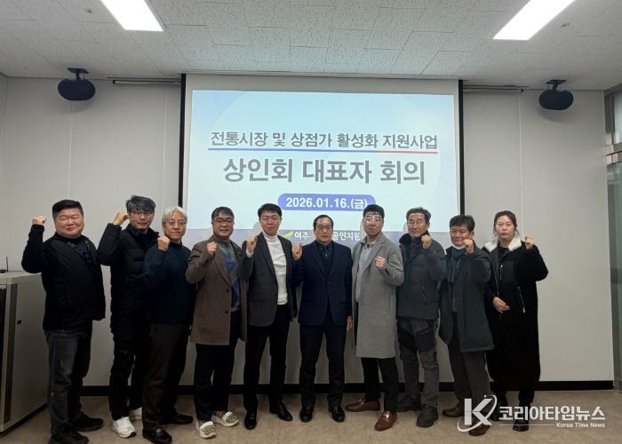 코리아타임뉴스 기동취재팀 | 여주시 소상공인지원센터는 지난 1월 16일 센터 회의실에서 상인회 대표자 회의를 개최하고, 전통시장 및 상점가 활성화 지원사업을 비롯한 2026년 여주시소상공인지원센터 주요 사업안내와 지역상권 활성화 방안에 대해 논의했다.