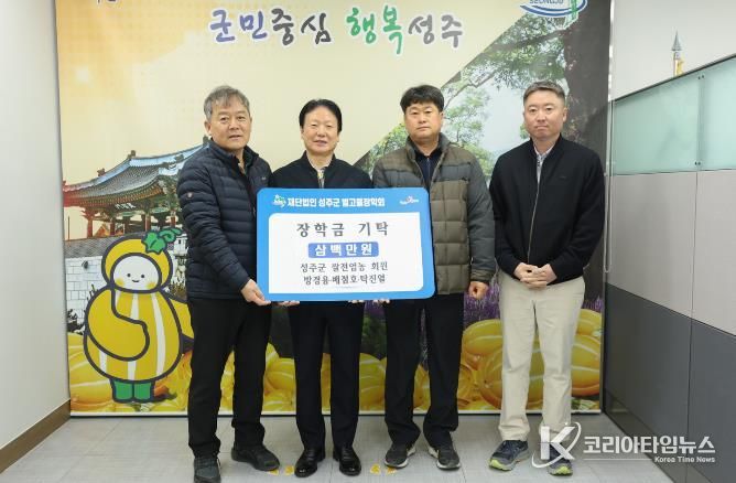 코리아타임뉴스 경북취재본부 | 지난 19일 성주군 쌀전업농회 회원 방경용 · 배점호 · 탁진열씨가 지역인재를 위한 장학금 각 1백만원씩 총3백만원을 (재)성주군별고을장학회에 기탁했다.