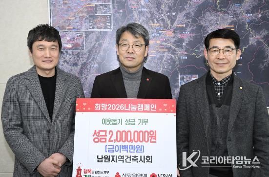 코리아타임뉴스 김태훈 기자 | 남원시는 지난 20일, 남원지역건축사회가 ‘희망 2026 나눔 캠페인’에 성금 200만 원을 기부했다고 밝혔다.