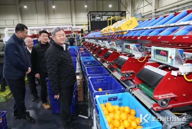 코리아타임뉴스 노승선 기자 | 김완근 제주시장은 만감류 출하기를 맞아 1월 20일(화) 하귀농협 스마트 산지유통센터(APC)를 방문해 제주산 만감류의 유통 전 과정을 점검하고, 현장 의견을 청취했다.