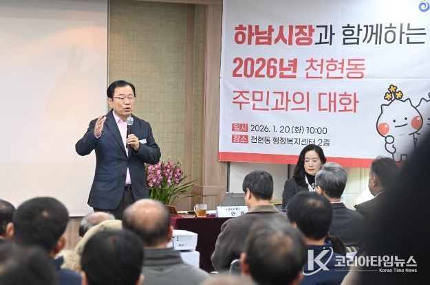 코리아타임뉴스 기동취재팀 | 이현재 하남시장은 20일 감일동 행정복지센터에서 열린 ‘주민과의 대화’에서 “방아다리길 연결도로 개통과 연계한 버스 노선 개편 및 생활 SOC 확충을 통해 감일신도시 주민들의 정주 여건을 개선하겠다”라고 밝혔다.