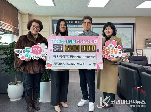 코리아타임뉴스 오영주 기자 | 김해시 장유3동행정복지센터는 20일 김해율하시티프라디움 다도아 부녀회(회장 김영주)에서 관내 어려운 취약가구 이웃을 위하여 성금 160만원을 기탁했다고 밝혔다.