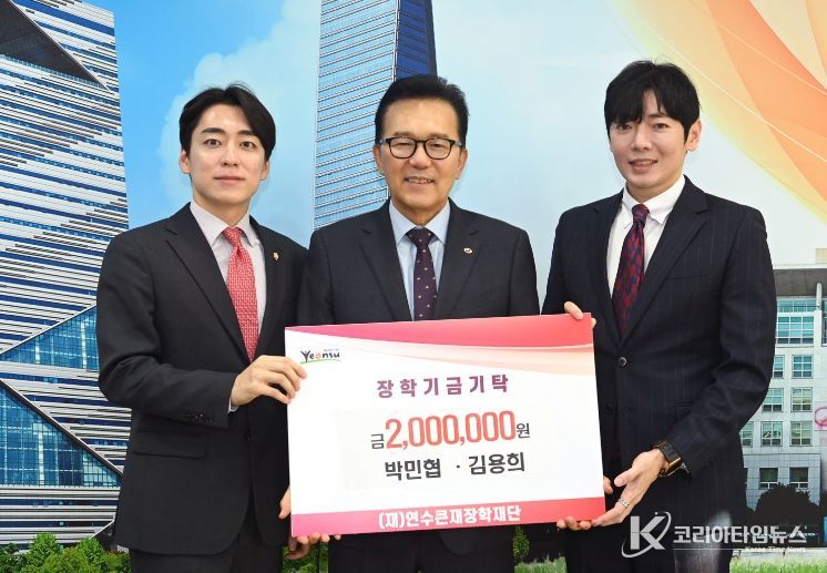 코리아타임뉴스 이아름 기자 | 연수큰재장학재단은 지난 20일 박민협 연수구의회 의원과 김용희 인천시의회 의원이 지역 인재 육성과 교육 발전을 위해 200만 원을 기탁했다고 밝혔다.