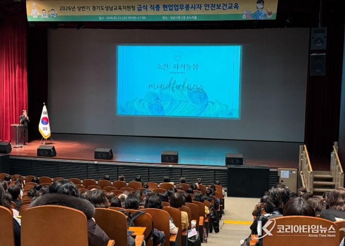 코리아타임뉴스 사회팀 | 경기도성남교육지원청은 2026년 1월 21일부터 1월 26일까지 4일 간 현업업무종사자 1천명을 대상으로 상반기 안전보건교육을 실시한다.