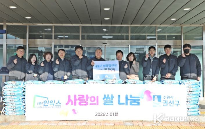 코리아타임뉴스 사회팀 | 수원시 권선구는 21일 ㈜인익스에서 설 명절을 맞이하여 후원한 백미(10kg) 100포에 대한 전달식을 진행했다.