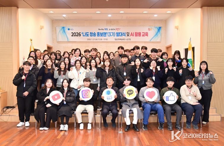 코리아타임뉴스 노승선 기자 | 청송군은 직원들이 직접 SNS 홍보에 참여하는 2026년 ‘나도 청송 홍보맨’ 발대식 및 AI 활용 교육을 21일 청송문화예술회관 소공연장에서 개최했다.