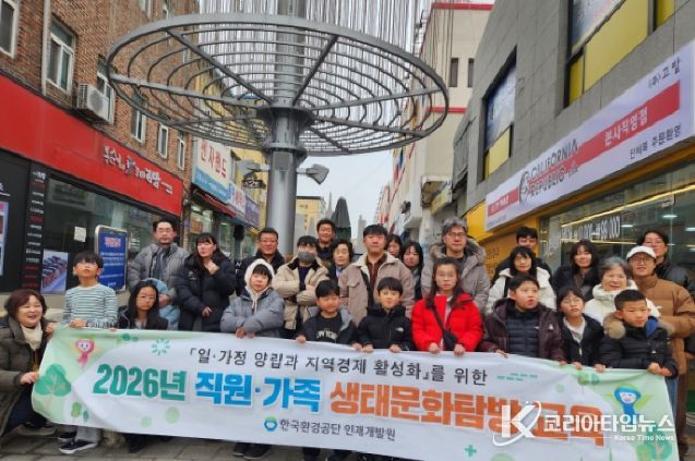 코리아타임뉴스 충북취재본부 | 기후에너지환경부 산하 한국환경공단(이사장 임상준)은 임직원의 직무 역량을 강화하고 가족 친화적 조직 문화를 확산하기 위해 ‘직원‧가족 생태문화탐방과 환경 교육 등’을 2026년에는 연간 48회, 약 2,500명 규모로 대폭 확대 운영한다고 밝혔다.