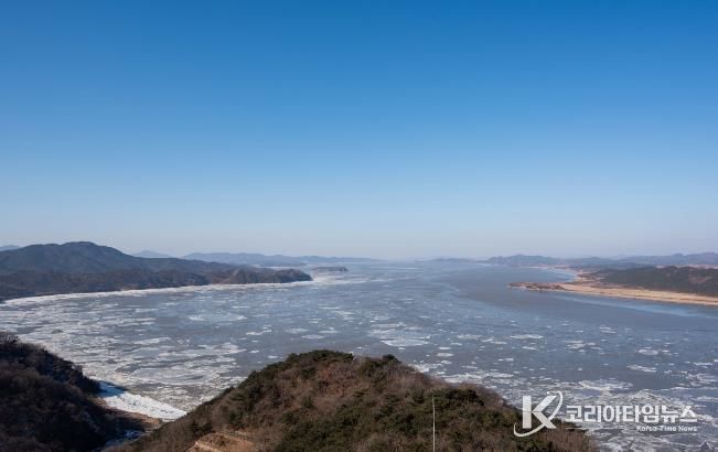 코리아타임뉴스 기동취재팀 | 연일 이어지는 강추위 속에서 애기봉평화생태공원 앞 한강하구 ‘조강’에 유빙이 형성되며, 겨울에만 만날 수 있는 특별한 풍경이 펼쳐지고 있다.