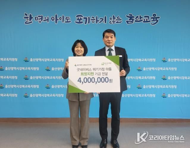 코리아타임뉴스 사회팀 | 울산 강북교육지원청은 22일 굿네이버스 울산지부(지부장 박무희)에서 위기가정 학생을 위한 생계비 400만 원을 전달받았다.