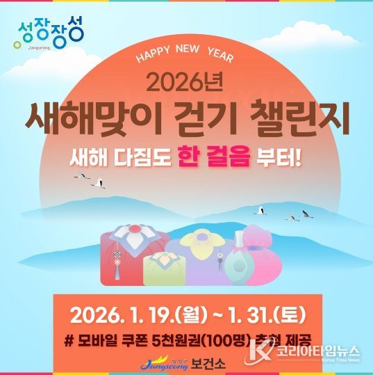 코리아타임뉴스 노승선 기자 | 장성군이 새해맞이 ‘걷기 챌린지’를 운영 중이다. 이달 31일까지 진행되며 스마트폰이 있는 주민이라면 누구나 참여할 수 있다.