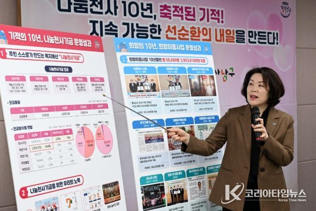 이날 남구는 나눔천사기금 희망이음사업 10년의 축적된 기적을 바탕으로 지속가능한 선순환의 내일을 위한 미래비전을 공개했다.
