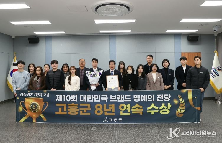 코리아타임뉴스 전남취재본부 | 고흥군은 산업정책연구원(IPS)이 주관하고 산업통상자원부·동아일보·서울과학종합대학원이 공동 후원하는 ‘2026년 대한민국 브랜드 명예의 전당’에서 귀농귀촌 도시 부문 8년 연속 수상의 영예를 안았다고 밝혔다.