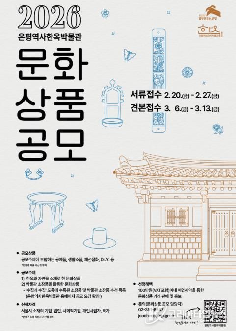 코리아타임뉴스 오영주 기자 | 서울 은평구는 오는 2월 20일부터 ‘2026 은평역사한옥박물관 문화상품 공모전’을 개최한다고 밝혔다.