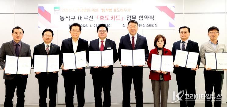 코리아타임뉴스 기동취재팀 | 동작구가 지난 23일, 건강한 노후생활 및 지역경제 활성화를 위한 어르신 효도카드 업무협약식을 개최했다고 밝혔다.