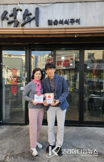 코리아타임뉴스 오영주 기자 | (재)김해시복지재단(대표이사 임주택) 김해시청소년수련관(관장 이현동)은 지난 23일(금) 김해시 진영읍에 위치한 석쇠에 방문해 착한가게 현판 전달식을 진행했다.