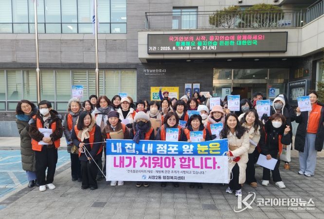 코리아타임뉴스 이아름 기자 | 인천시 남동구 서창2동 행정복지센터는 최근 통장자율회 53명과 함께 겨울철 안전사고 예방을 위한 ‘내 집, 내 점포 앞 눈 치우기’ 캠페인을 펼쳤다고 27일 밝혔다.
