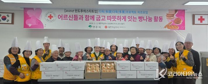 코리아타임뉴스 노승선 기자 | 대한적십자사봉사회 영주시협의회(회장 김영희)는 돌봄을 받는 어르신들이 봉사의 주체로 직접 참여하는 제빵 나눔 봉사활동을 펼치며 지역사회에 따뜻한 나눔을 전하고 있다.