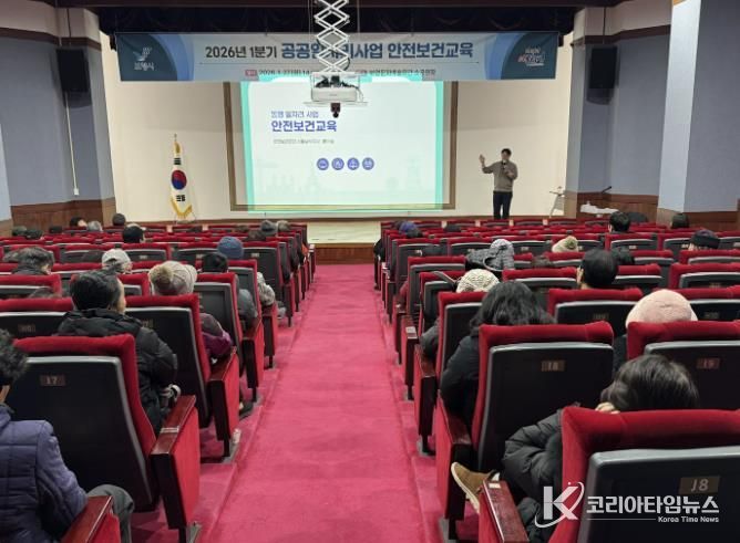 코리아타임뉴스 충남취재본부 | 보령시는 지난 27일 보령문화예술회관 소공연장에서 공공일자리사업 참여자와 관계 공무원 등 110명을 대상으로 ‘2026년 1분기 공공일자리사업 안전보건교육’을 실시했다.