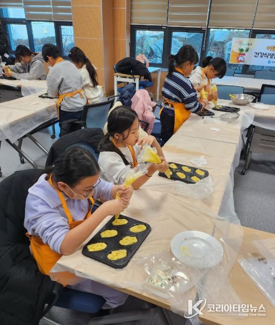 프로그램은 어린이 눈높이에 맞춘 겨울철 영양교육 이론과 설탕과 지방을 줄인 재료를 활용해 건강한 마들렌을 직접 만들어보는 체험활동으로 구성됐다.