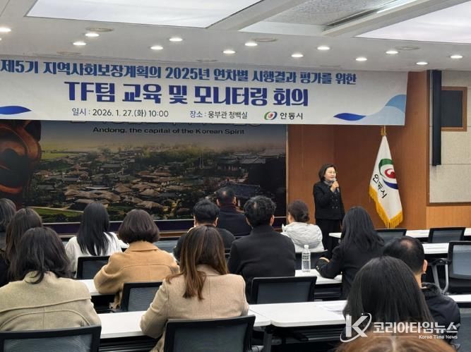 코리아타임뉴스 노승선 기자 | 안동시는 1월 27일 시청 청백실에서 ‘제5기(2023~2026) 지역사회보장계획’ 2025년도 연차별 시행계획의 체계적이고 객관적인 추진 결과 평가를 위해 TF팀 교육 및 모니터링 회의를 개최했다.