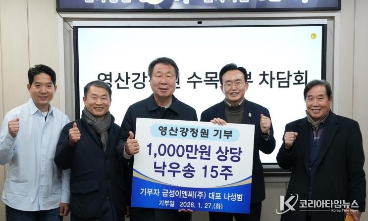 세지면이 고향인 나성범 대표는 2024년 자연석 432톤(2천만 원 상당)을 기부한 데 이어 올해에는 1천만 원 상당의 수목을 추가로 기부하며 영산강정원 조성에 꾸준한 관심과 지원을 이어오고 있다.