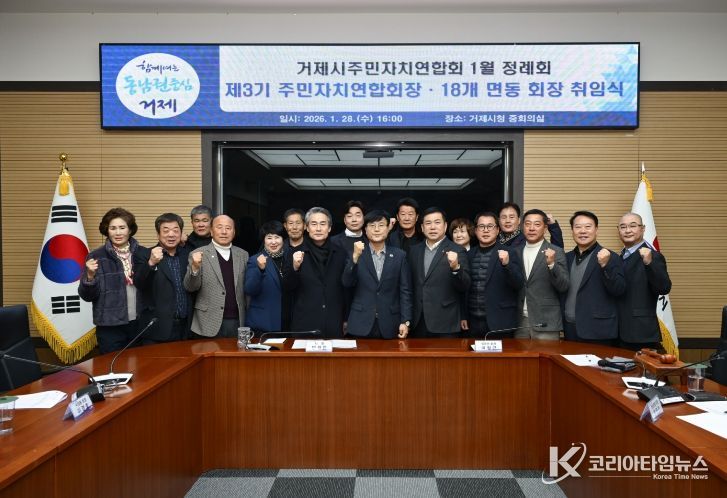 코리아타임뉴스 경남취재본부 | 거제시주민자치연합회(회장 여철근)는 지난 28일 거제시청 대회의실에서 제3기 거제시 주민자치회 구성 이후 첫 정례회를 개최했다.