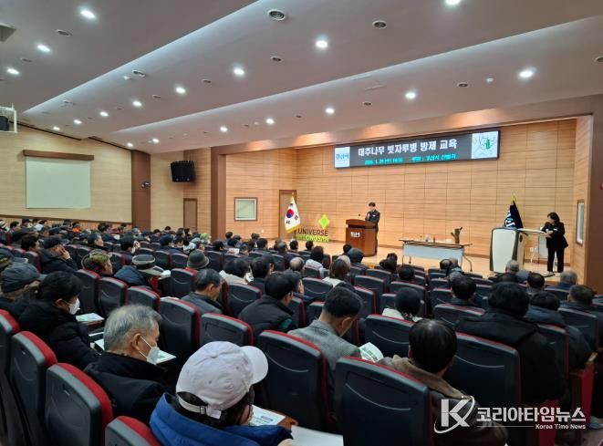 코리아타임뉴스 경북취재본부 | 경산시는 28일 농업기술센터에서 관내 대추 농가를 대상으로 대추나무빗자루병 확산을 예방하기 위해 방제 교육을 실시했다.