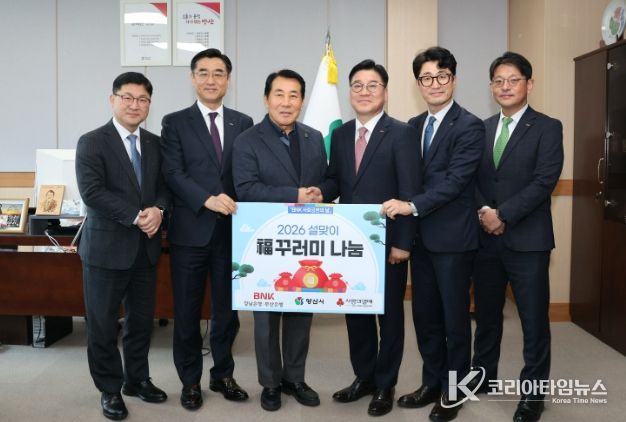 코리아타임뉴스 오영주 기자 | BNK금융그룹(경남은행, 부산은행)은 29일 설명절을 맞아 지역 내 소외계층을 위한 설날맞이 사랑나눔 사업(복꾸러미) 물품을 기탁했다.