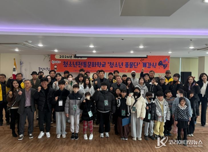 코리아타임뉴스 충남취재본부 | 금산군은 1월 31일 금산읍 청산회관 여성창의문화센터에서 지역 청소년들의 전통문화 계승과 예술적 감수성 함양을 위한 2026년 제3기 청소년전통문화학교 청소년 풍물단 개강식을 성료했다.