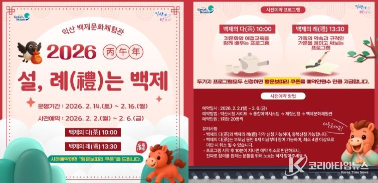코리아타임뉴스 김태훈 기자 | 익산시가 설 명절을 맞아 백제의 문화와 예절을 체험으로 풀어낸 프로그램을 선보인다.
