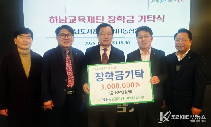 코리아타임뉴스 기동취재팀 | NH농협은행 하남시지부는 하남시 지역인재 양성을 위해 하남교육재단에 장학금 3백만원을 기탁했다.