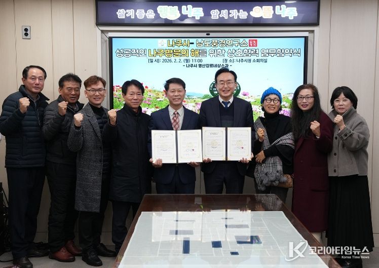 나주시는 2일 시청 소회의실에서 남도풍경연구소와 나주시 관광자원의 기록·확산 및 ‘2026 나주방문의 해’ 성공 추진을 위한 업무협약을 체결했다고 밝혔다.