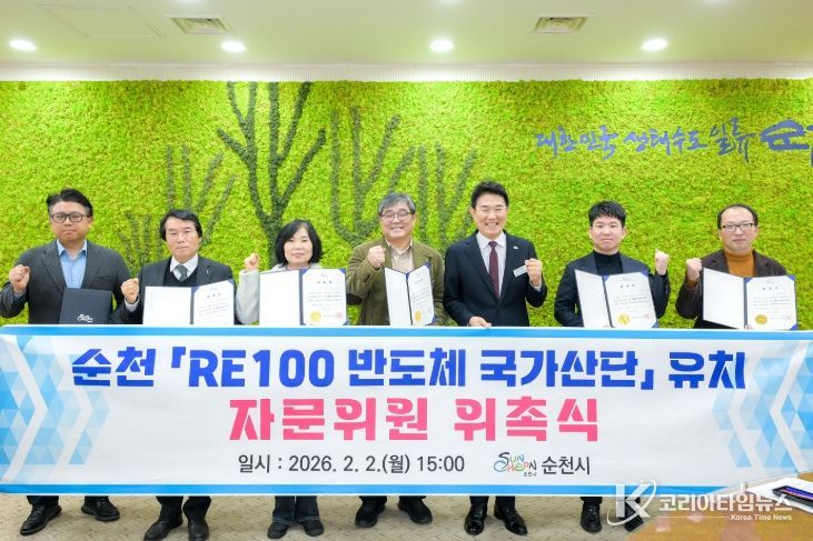 코리아타임뉴스 전남취재본부 | 순천시가 지난 2일 RE100 반도체 국가산단 유치를 위해 분야별 전문성을 갖춘 자문위원 8명을 위촉하고, 육성 전략 고도화 및 유치 활동에 더욱 박차를 가한다.