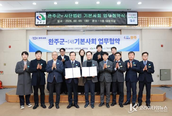 코리아타임뉴스 전북취재본부 | 완주군이 사단법인 기본사회와 손잡고 지역 여건에 맞는 기본사회 정책사업 발굴·추진에 나선다.