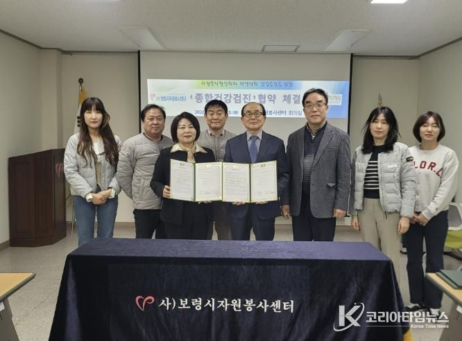 코리아타임뉴스 충남취재본부 | 보령시자원봉사센터는 3일 우수자원봉사자들의 건강관리를 위해 자원봉사센터 회의실에서 건양대학교병원과 ‘종합건강검진 협약’을 체결했다.