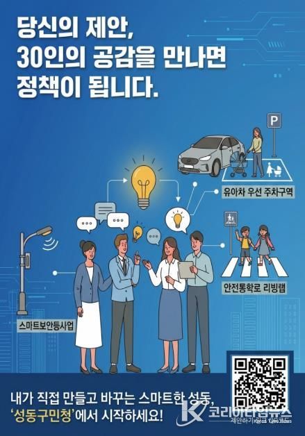 코리아타임뉴스 오영주 기자 | 서울 성동구가 주민이 직접 일상 속 문제를 제안하고 해결하는 온라인 플랫폼 '성동구민청'을 통해 주민 맞춤형 생활밀착 정책을 잇달아 발굴하고 있다.
