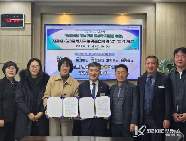 코리아타임뉴스 전북취재본부 | 김제시는 4일 귀농귀촌 활성화 지원사업의 효율적인 추진을 위해 김제시와 (사)김제시귀농귀촌협의회 간 업무협약을 체결했다고 밝혔다.