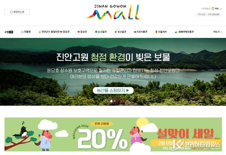 코리아타임뉴스 전북취재본부 | 진안군은 설 명절을 맞아 고물가로 어려움을 겪는 소비자의 가계 부담을 완화하고 지역 농산물 소비를 촉진하기 위해 온·오프라인 특별 할인 행사를 진행한다.