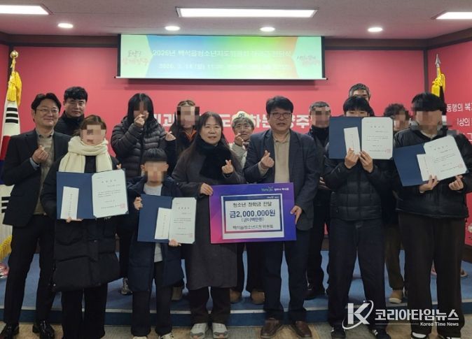코리아타임뉴스 윤광희 기자 | 백석읍 청소년지도위원회가 4일 지역 내 학생 4명에게 총 200만 원의 장학금을 전달했다.