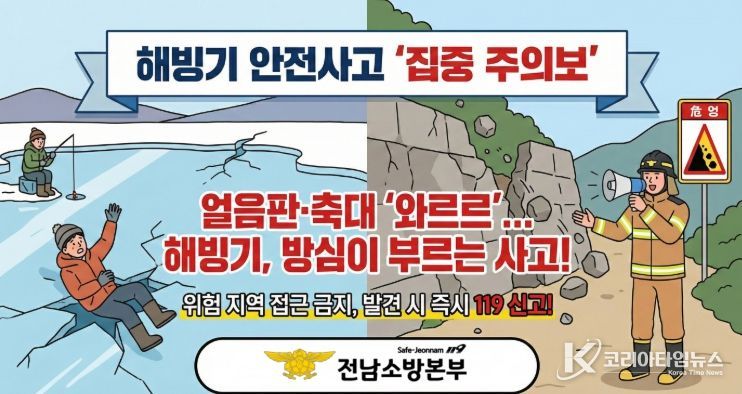코리아타임뉴스 김태훈 기자 | 전남소방본부는 입춘(4일)을 맞아 겨울철 얼었던 지반이 녹아내리는 '해빙기' 안전사고 발생 위험이 높아짐에 따라 도민들의 각별한 주의를 당부했다.