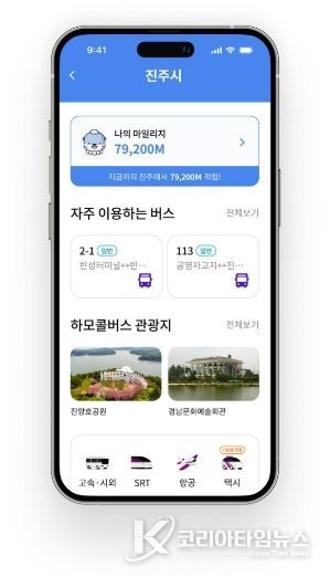 또한 서울과 경기, 대전에서 진주를 관광 또는 업무 목적으로 오고 갈 때에도 ‘티머니GO’를 이용하면 환승할 때마다 1650원의 광역 환승 마일리지의 적립을 받을 수 있다.