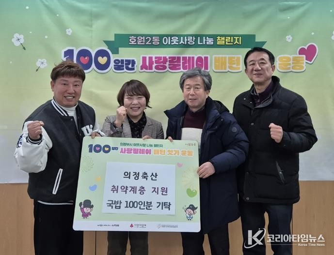 코리아타임뉴스 기동취재팀 | 의정부시 호원2동주민센터는 2월 3일 의정축산이 설 명절을 맞아 어려운 이웃들을 위해 한우국밥 100인분을 기탁했다고 밝혔다.