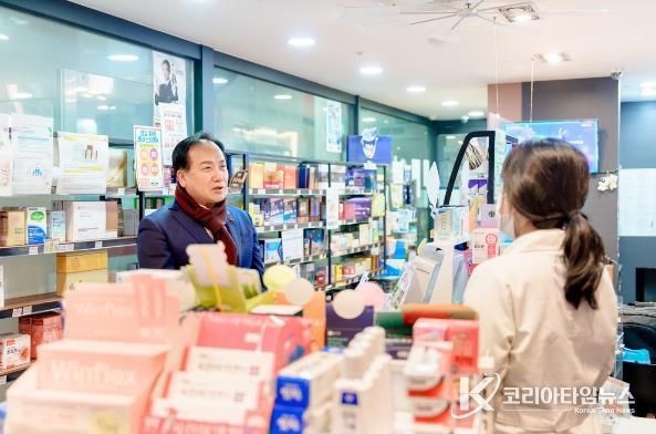이번 현장 방문은 설 연휴 기간 병·의원 휴진에 따른 의료 공백을 최소화하고, 심야 시간대 시민들의 의약품 이용 불편을 해소하기 위해 비상 근무에 나선 약국 운영 실태를 직접 확인하고자 마련됐다.